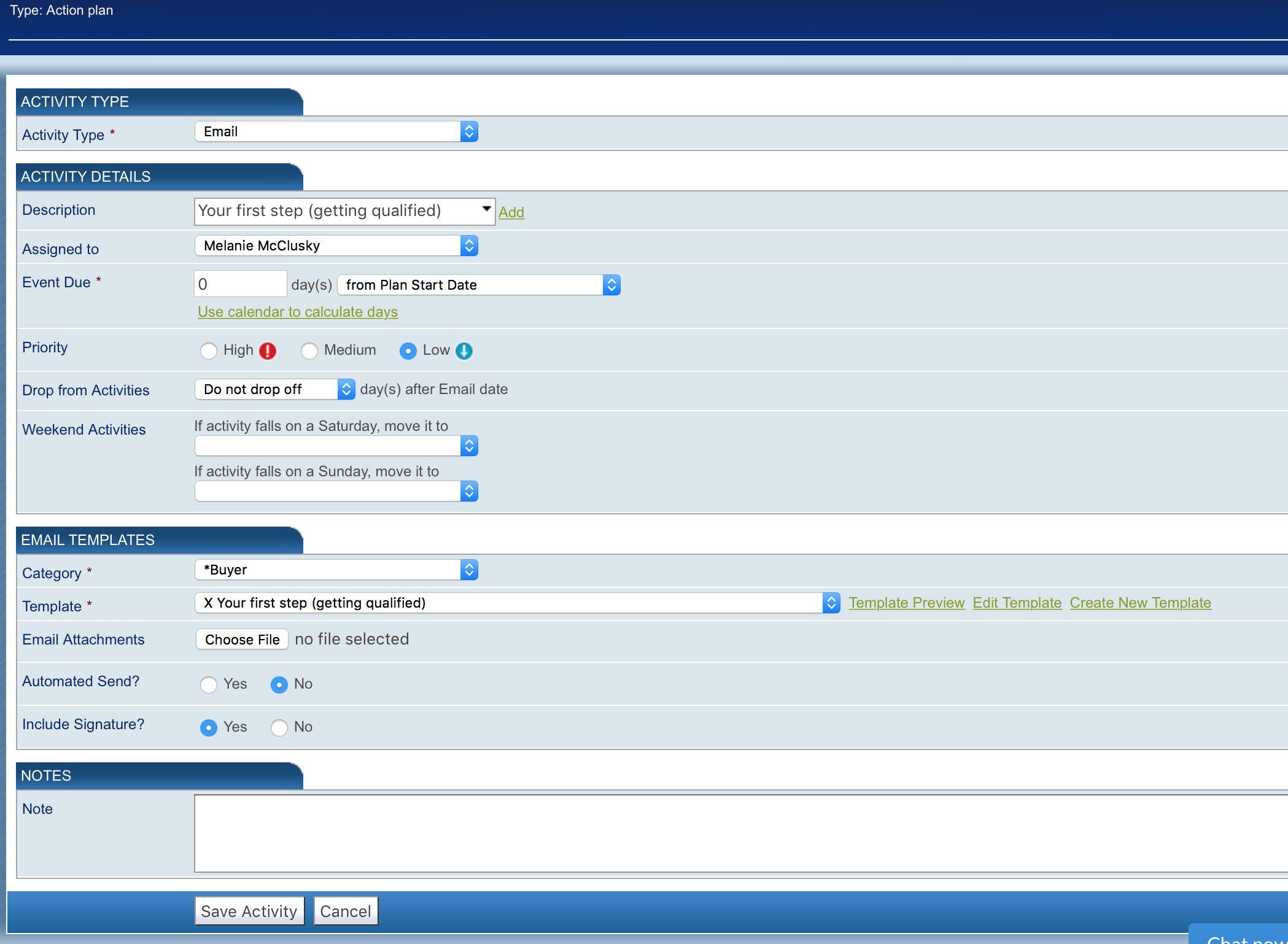 - Ability select an email template and assign it to the task for delivery.